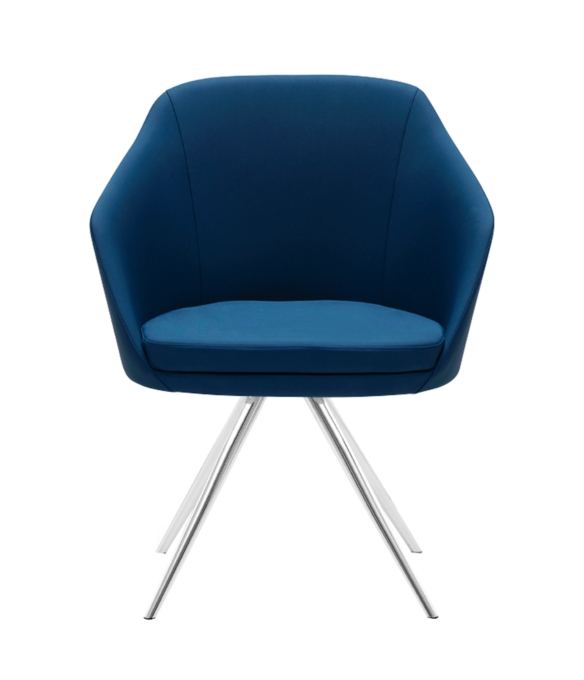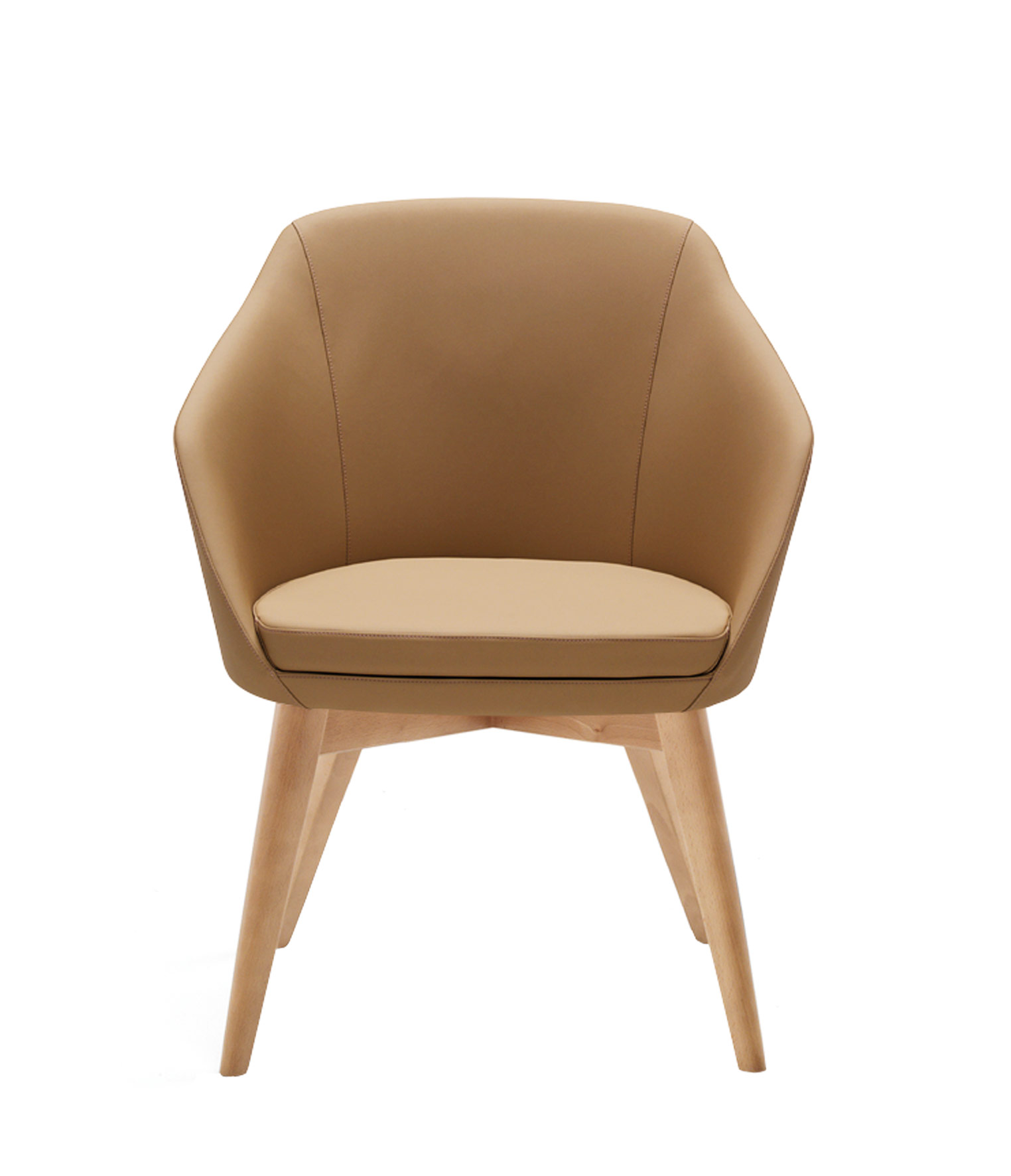 Poltroncina imbottita con rivestimento in tessuto o ecopelle. Base in legno o in metallo