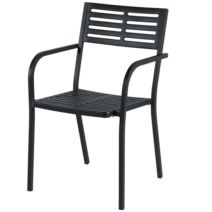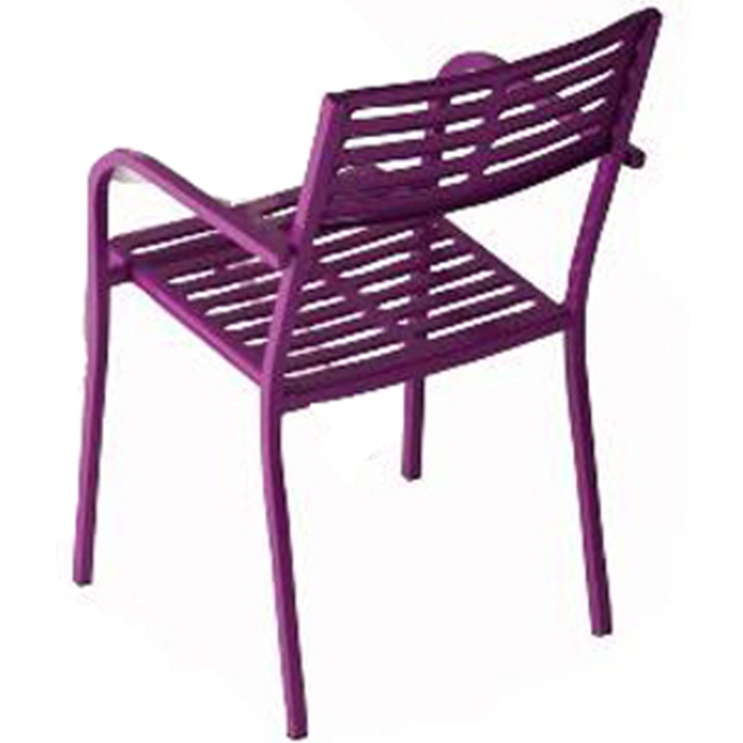 Poltroncina con struttura in alluminio a sezione quadrata. Verniciato grigio scuro o altri colori. Impilabile