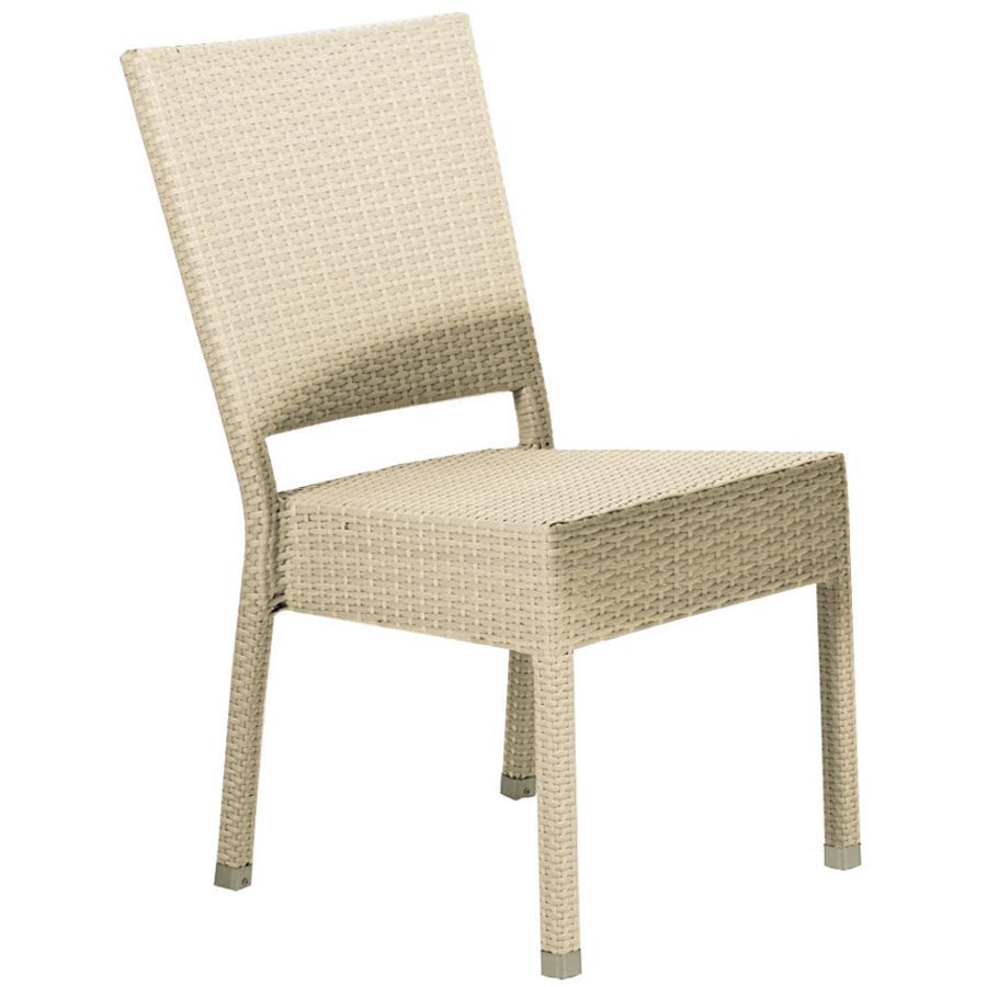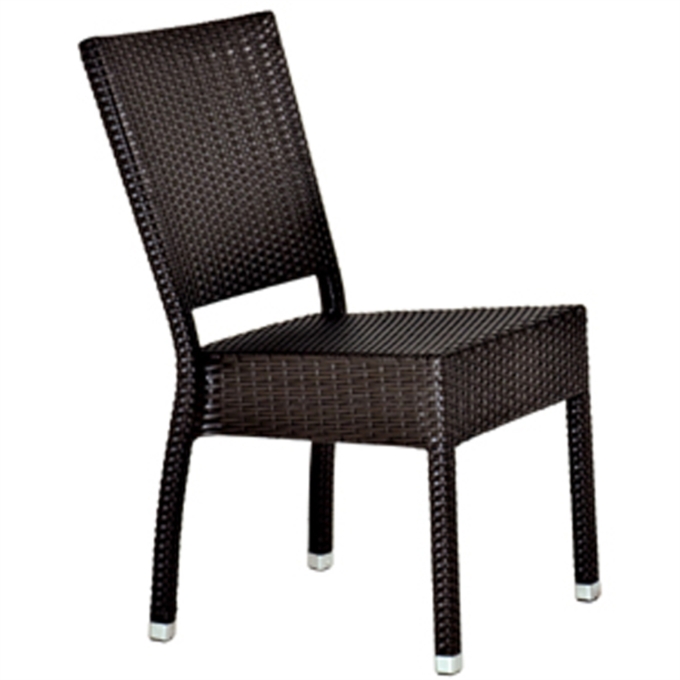 Sedia con struttura in alluminio e rivestimento in filo plastificato colore wengé oppure colore crema. Cuscino sfoderabile disponibile a richiesta