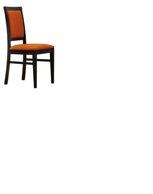 Sedia in faggio tinto a richiesta, sedile e schienale imbottiti e rivestiti in tessuto oppure in eco-pelle