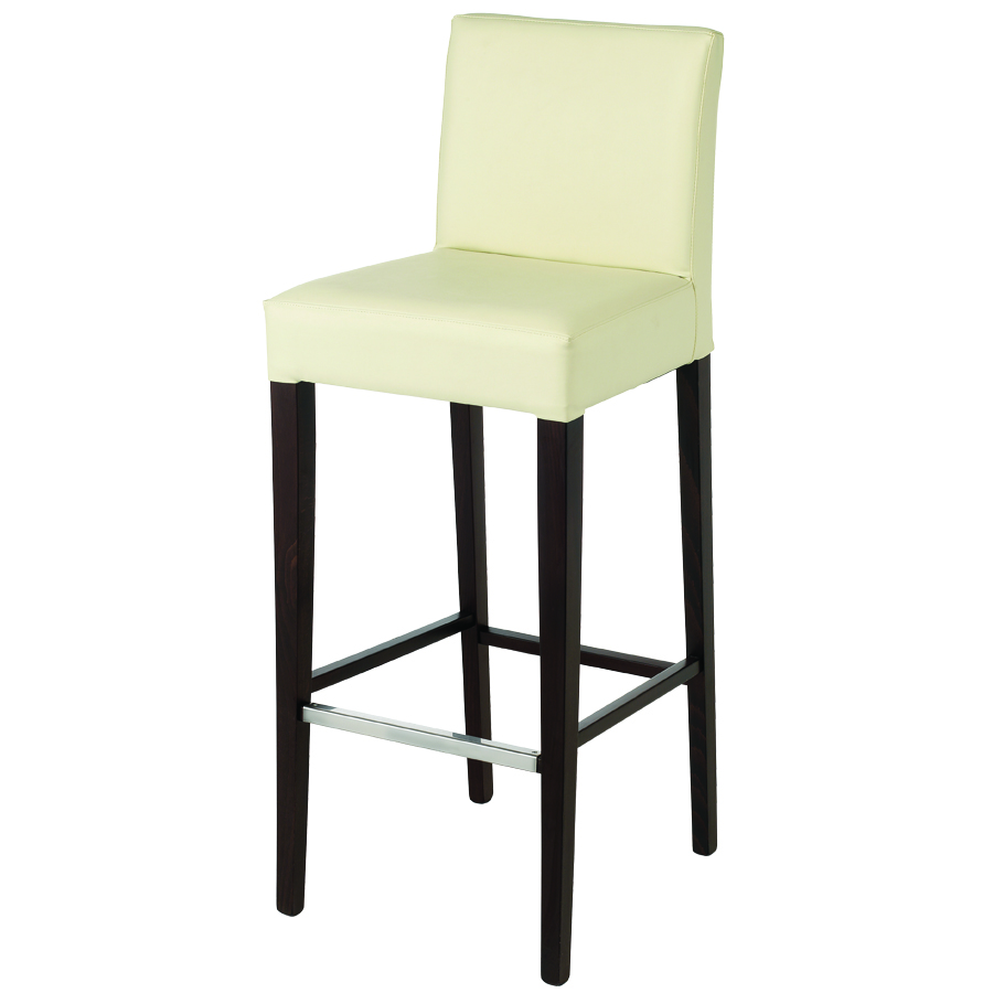 Sgabello in faggio tinto o laccato, sedile e schienale imbottito
