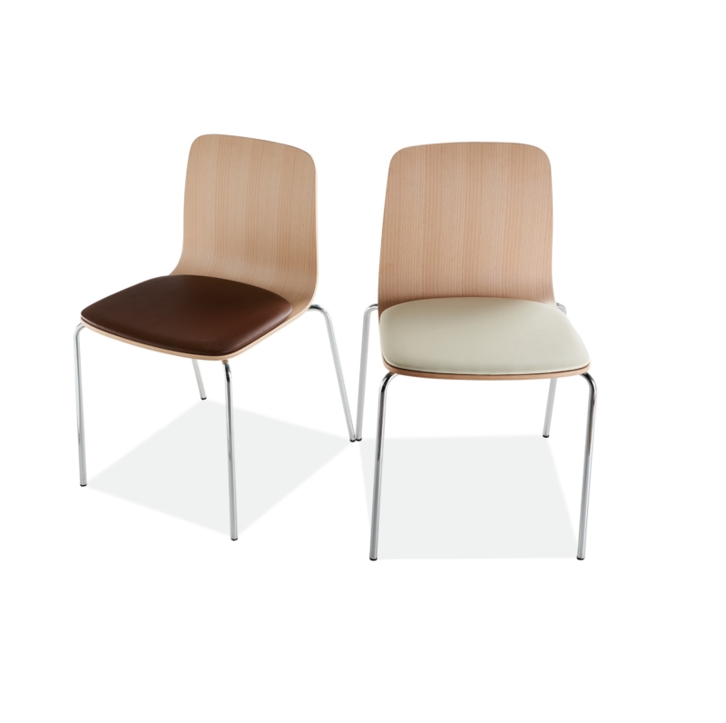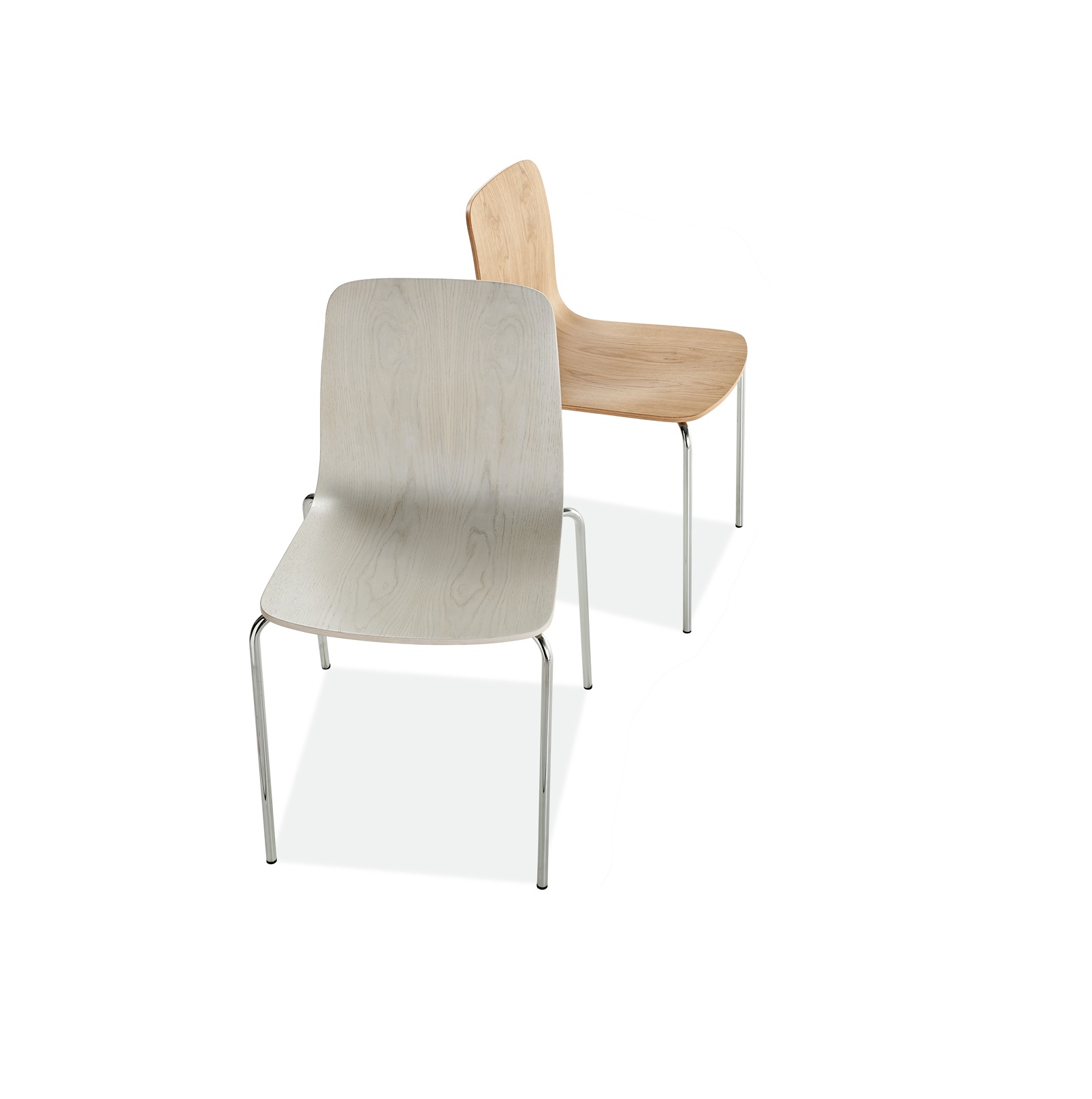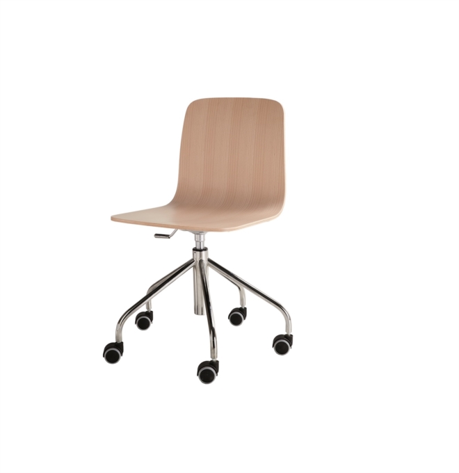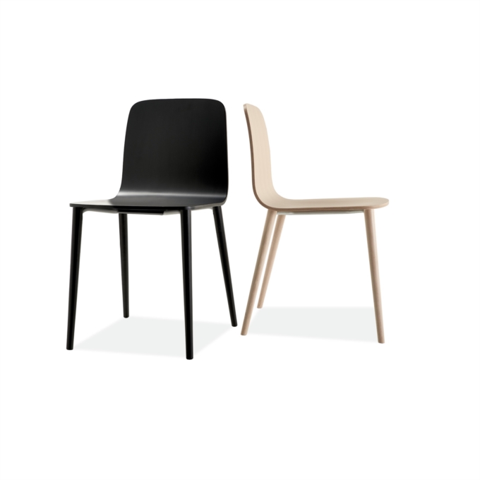 Sedia con scocca in legno faggio oppure rovere, naturale o tinto. La base è disponibile in diverse versioni