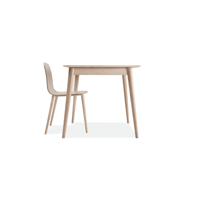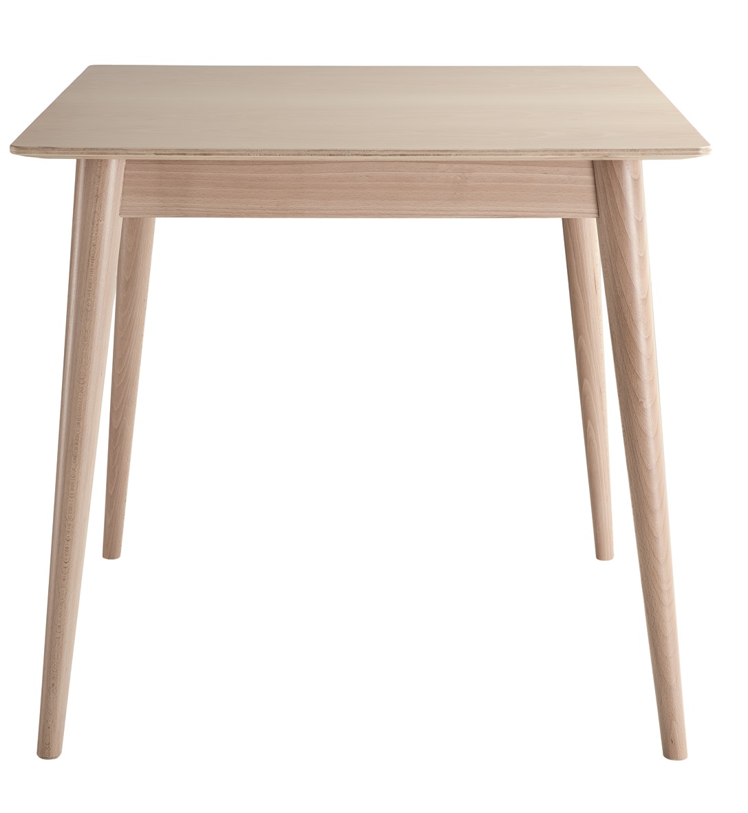 Tavolo con struttura in faggio massello e piano laminato in vari colori con bordo multistrati a vista. Dimensione cm 80x80 84 persone). Disponibile anche con piano in legno o laccato