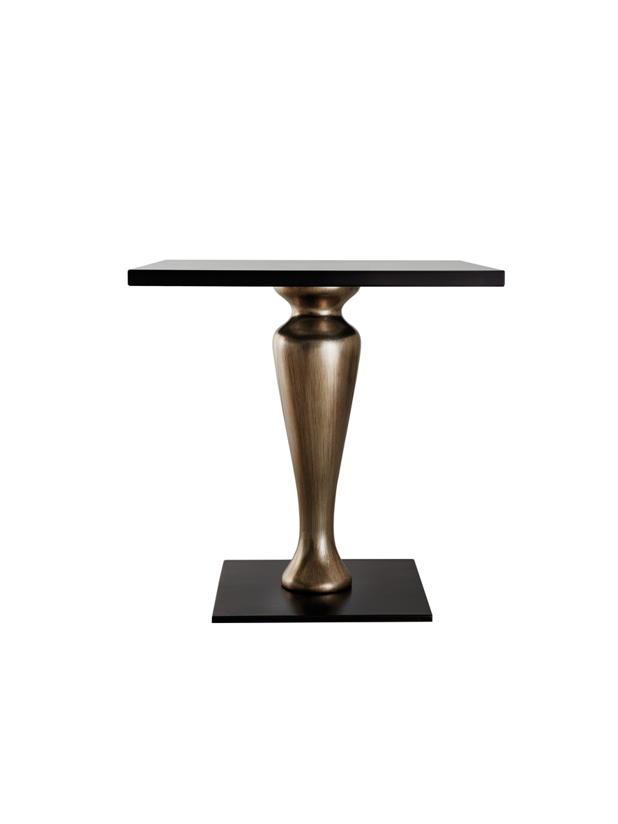 Base in ghisa con colonna centrale in legno tornito verniciato a richiesta