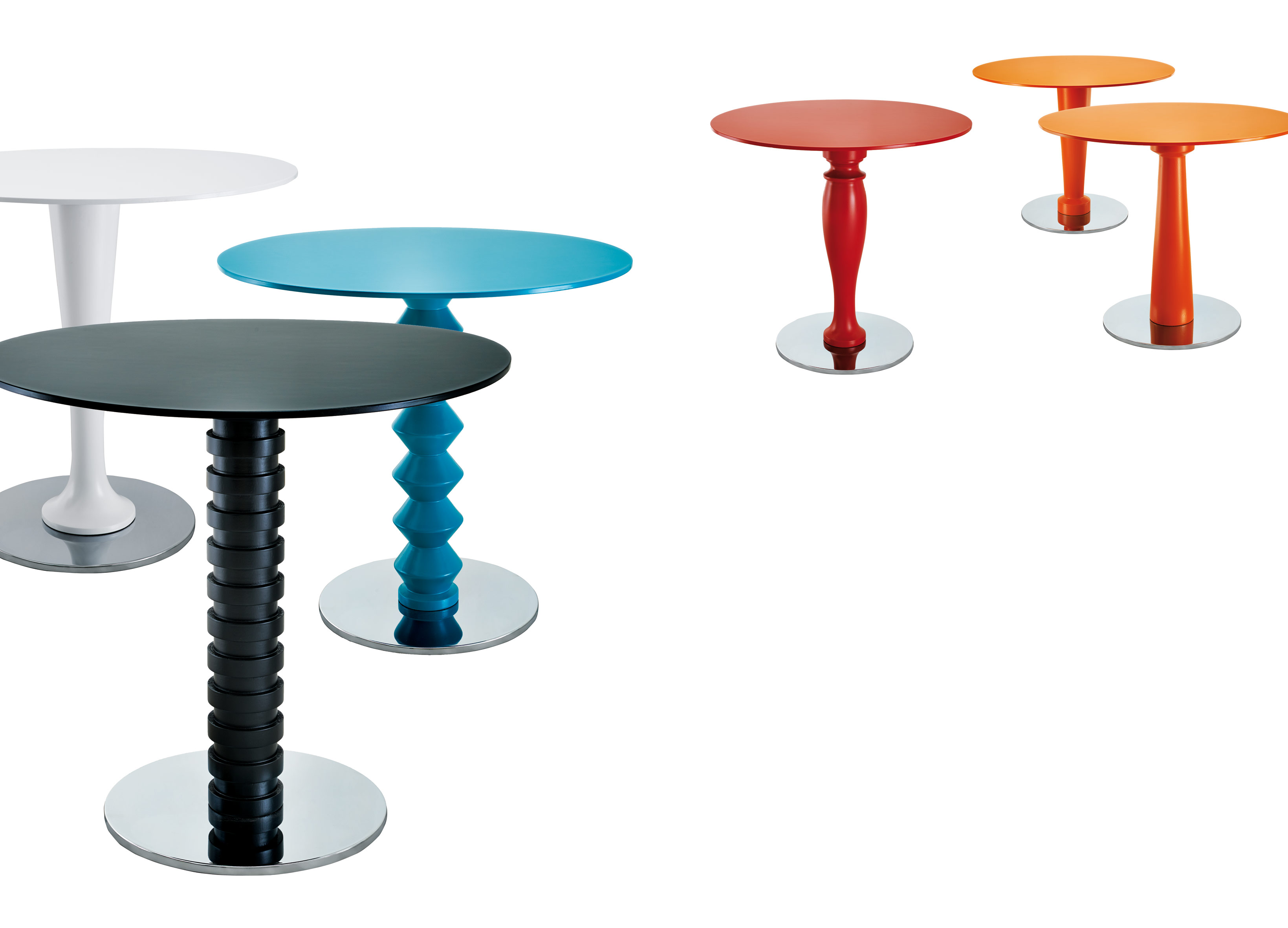 Base in ghisa con copribase in acciaio cromato e colonna in legno laccata in vari colori