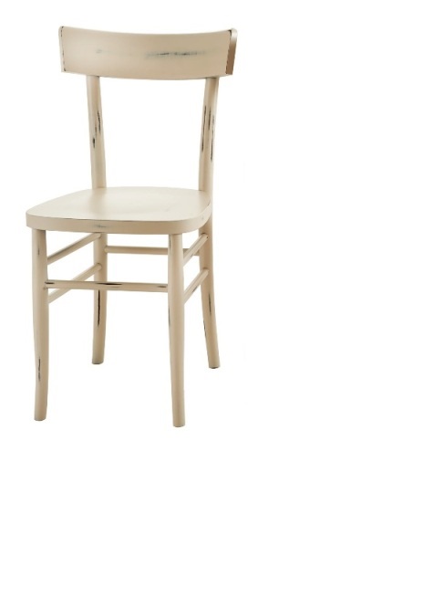 Sedia da trattoria con sedile in legno, finitura "Shabby Chic" o in altre varianti