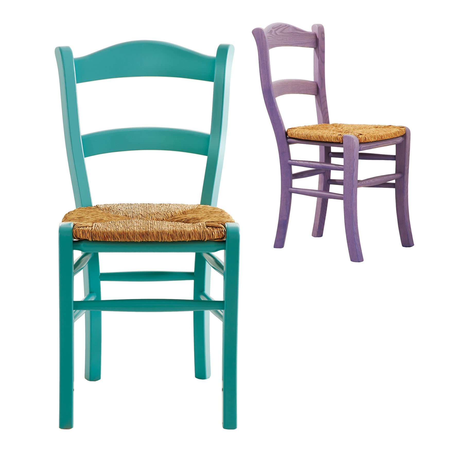 Sedia in frassino o in faggio tinta a richiesta. Seduta impagliata o in legno